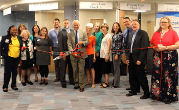 Cambridge Health Alliance leaders, Board of Trustee members and staff celebrate the opening.more